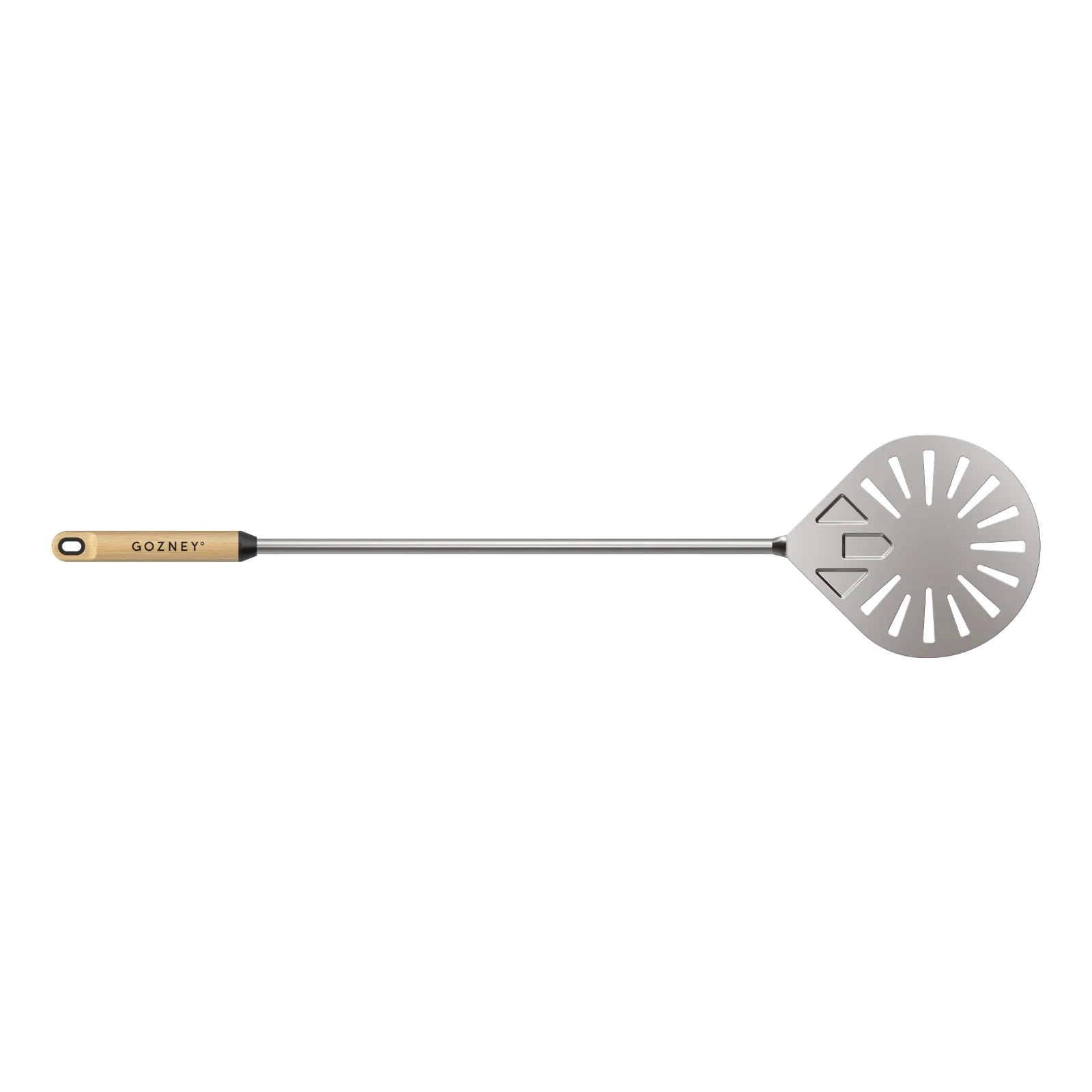 Next-level performance is effortless to handle with the Balance Turning Peel. Combining a larger stainless steel blade with a comfortable Beech wood handle, this durable turning peel enables you to turn and move pizza with greater ease and control. The tear drop shape is designed to enhance the turning motion, with the entire blade being pressed and welded for a snag-free experience. The perforated metal lets excess flour fall through for delicious crust without the unwanted burnt taste. Designed to be ergonomic, the wood handle shifts the center of gravity closer to the hand for more control when moving pizza. The soft touch of the wooden handle is timeless and classic in its feel. Create pizza with confidence with the perfect balance of performance and ease.